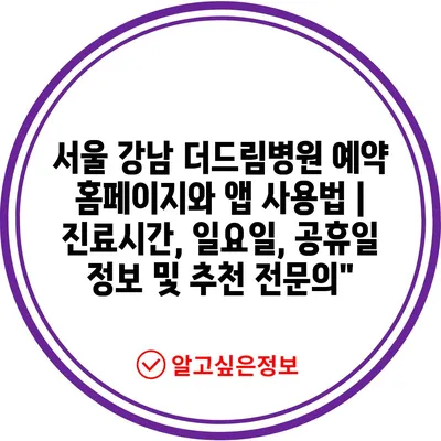 서울 강남 더드림병원 예약 홈페이지와 앱 사용법 | 진료시간, 일요일, 공휴일 정보 및 추천 전문의”