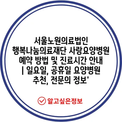 서울노원의료법인 행복나눔의료재단 사랑요양병원 예약 방법 및 진료시간 안내 | 일요일, 공휴일 요양병원 추천, 전문의 정보’