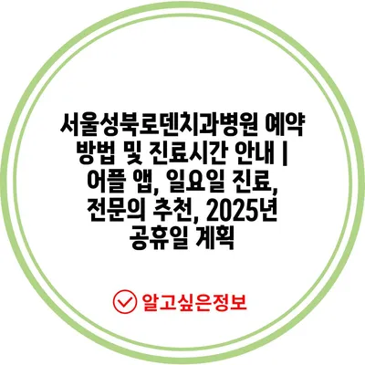 서울성북로덴치과병원 예약 방법 및 진료시간 안내 | 어플 앱, 일요일 진료, 전문의 추천, 2025년 공휴일 계획
