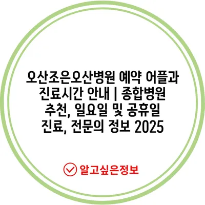 오산조은오산병원 예약 어플과 진료시간 안내 | 종합병원 추천, 일요일 및 공휴일 진료, 전문의 정보 2025