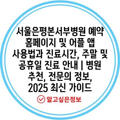 서울은평본서부병원 예약 홈페이지 및 어플 앱 사용법과 진료시간, 주말 및 공휴일 진료 안내 | 병원 추천, 전문의 정보, 2025 최신 가이드
