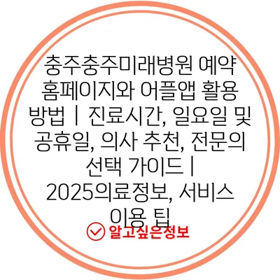 충주충주미래병원 예약 홈페이지와 어플앱 활용 방법|진료시간, 일요일 및 공휴일, 의사 추천, 전문의 선택 가이드 | 2025의료정보, 서비스 이용 팁