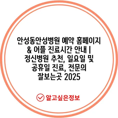 안성동안성병원 예약 홈페이지 & 어플 진료시간 안내 | 정신병원 추천, 일요일 및 공휴일 진료, 전문의 잘보는곳 2025