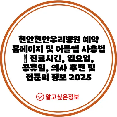 천안천안우리병원 예약 홈페이지 및 어플앱 사용법 | 진료시간, 일요일, 공휴일, 의사 추천 및 전문의 정보 2025