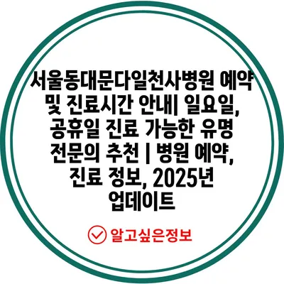 서울동대문다일천사병원 예약 및 진료시간 안내| 일요일, 공휴일 진료 가능한 유명 전문의 추천 | 병원 예약, 진료 정보, 2025년 업데이트