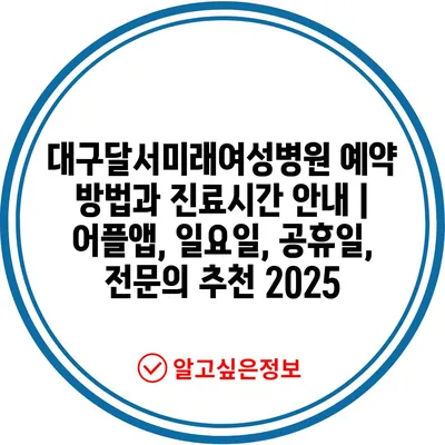 대구달서미래여성병원 예약 방법과 진료시간 안내 | 어플앱, 일요일, 공휴일, 전문의 추천 2025