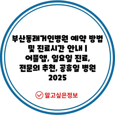 부산동래거인병원 예약 방법 및 진료시간 안내 | 어플앱, 일요일 진료, 전문의 추천, 공휴일 병원 2025