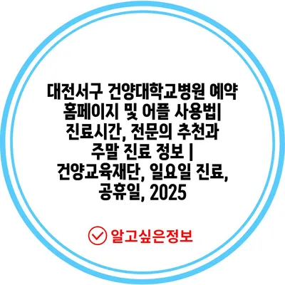 대전서구 건양대학교병원 예약 홈페이지 및 어플 사용법| 진료시간, 전문의 추천과 주말 진료 정보 | 건양교육재단, 일요일 진료, 공휴일, 2025