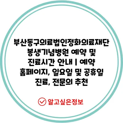 부산동구의료법인정화의료재단 봉생기념병원 예약 및 진료시간 안내 | 예약 홈페이지, 일요일 및 공휴일 진료, 전문의 추천