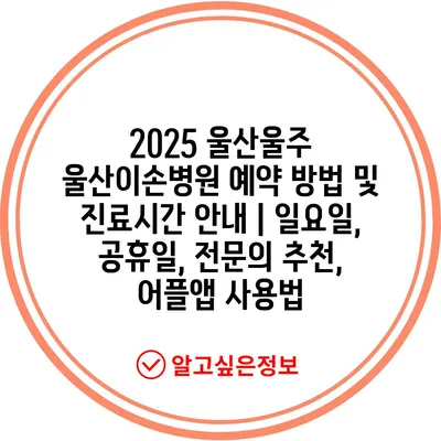 2025 울산울주 울산이손병원 예약 방법 및 진료시간 안내 | 일요일, 공휴일, 전문의 추천, 어플앱 사용법