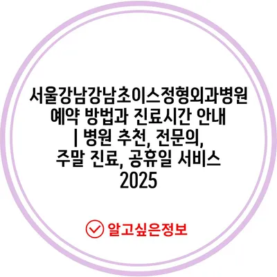 서울강남강남초이스정형외과병원 예약 방법과 진료시간 안내 | 병원 추천, 전문의, 주말 진료, 공휴일 서비스 2025