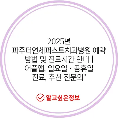 2025년 파주더연세퍼스트치과병원 예약 방법 및 진료시간 안내 | 어플앱, 일요일·공휴일 진료, 추천 전문의”