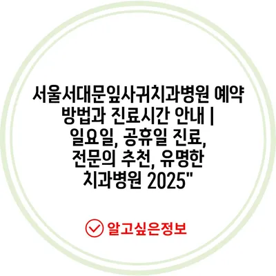서울서대문잎사귀치과병원 예약 방법과 진료시간 안내 | 일요일, 공휴일 진료, 전문의 추천, 유명한 치과병원 2025″