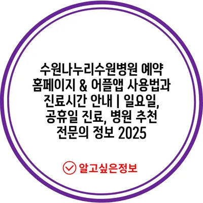 수원나누리수원병원 예약 홈페이지 & 어플앱 사용법과 진료시간 안내 | 일요일, 공휴일 진료, 병원 추천 전문의 정보 2025