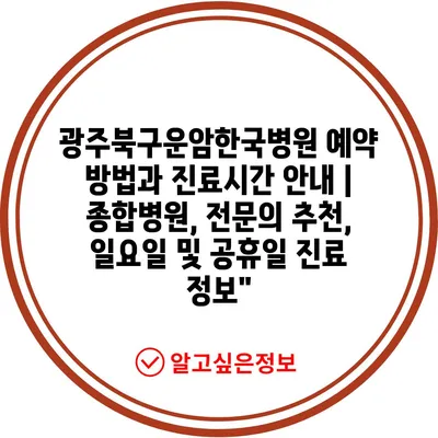 광주북구운암한국병원 예약 방법과 진료시간 안내 | 종합병원, 전문의 추천, 일요일 및 공휴일 진료 정보”