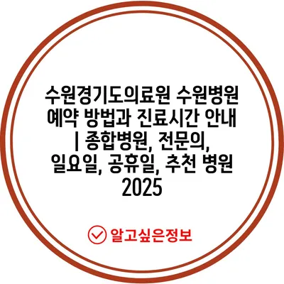 수원경기도의료원 수원병원 예약 방법과 진료시간 안내 | 종합병원, 전문의, 일요일, 공휴일, 추천 병원 2025