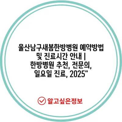 울산남구새봄한방병원 예약방법 및 진료시간 안내 | 한방병원 추천, 전문의, 일요일 진료, 2025″