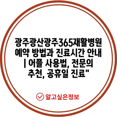 광주광산광주365재활병원 예약 방법과 진료시간 안내 | 어플 사용법, 전문의 추천, 공휴일 진료”