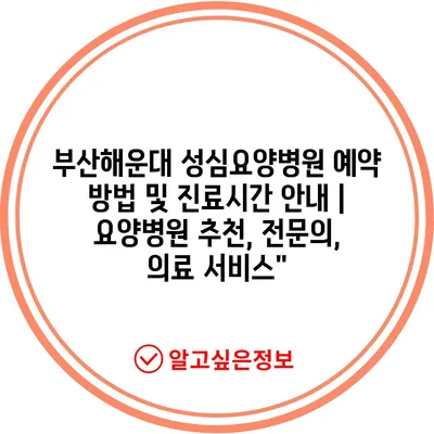 부산해운대 성심요양병원 예약 방법 및 진료시간 안내 | 요양병원 추천, 전문의, 의료 서비스”