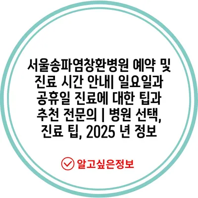 서울송파염창환병원 예약 및 진료 시간 안내| 일요일과 공휴일 진료에 대한 팁과 추천 전문의 | 병원 선택, 진료 팁, 2025 년 정보