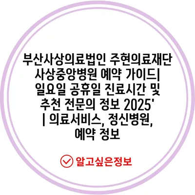 부산사상의료법인 주현의료재단 사상중앙병원 예약 가이드| 일요일 공휴일 진료시간 및 추천 전문의 정보 2025′ | 의료서비스, 정신병원, 예약 정보