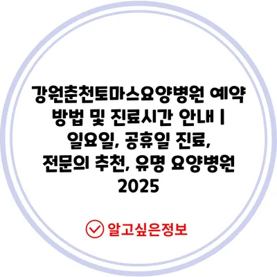 강원춘천토마스요양병원 예약 방법 및 진료시간 안내 | 일요일, 공휴일 진료, 전문의 추천, 유명 요양병원 2025