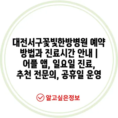 대전서구꽃빛한방병원 예약 방법과 진료시간 안내 | 어플 앱, 일요일 진료, 추천 전문의, 공휴일 운영
