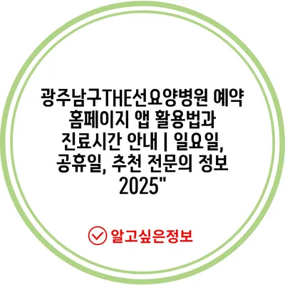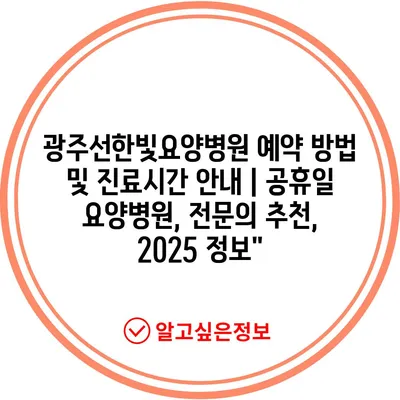 광주선한빛요양병원 예약 방법 및 진료시간 안내 | 공휴일 요양병원, 전문의 추천, 2025 정보”
