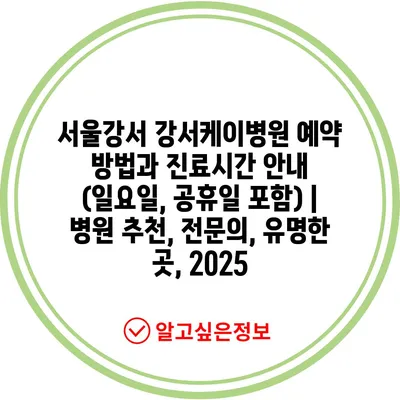 서울강서 강서케이병원 예약 방법과 진료시간 안내 (일요일, 공휴일 포함) | 병원 추천, 전문의, 유명한 곳, 2025