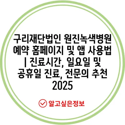 구리재단법인 원진녹색병원 예약 홈페이지 및 앱 사용법 | 진료시간, 일요일 및 공휴일 진료, 전문의 추천 2025