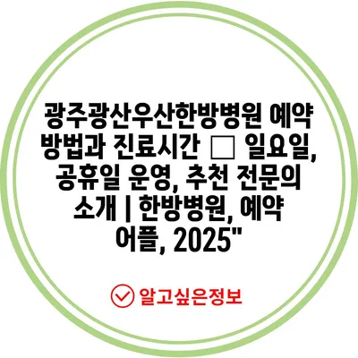 광주광산우산한방병원 예약 방법과 진료시간 – 일요일, 공휴일 운영, 추천 전문의 소개 | 한방병원, 예약 어플, 2025″