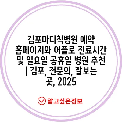 김포마디척병원 예약 홈페이지와 어플로 진료시간 및 일요일 공휴일 병원 추천 | 김포, 전문의, 잘보는 곳, 2025