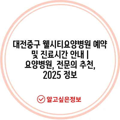 대전중구 웰시티요양병원 예약 및 진료시간 안내 | 요양병원, 전문의 추천, 2025 정보