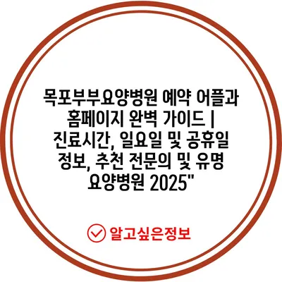 목포부부요양병원 예약 어플과 홈페이지 완벽 가이드 | 진료시간, 일요일 및 공휴일 정보, 추천 전문의 및 유명 요양병원 2025″