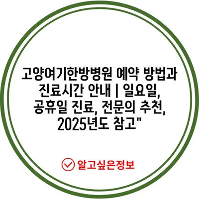 고양여기한방병원 예약 방법과 진료시간 안내 | 일요일, 공휴일 진료, 전문의 추천, 2025년도 참고”