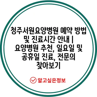 청주서원요양병원 예약 방법 및 진료시간 안내 | 요양병원 추천, 일요일 및 공휴일 진료, 전문의 찾아보기
