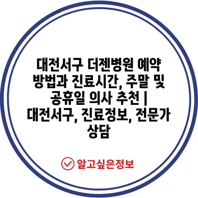대전서구 더젠병원 예약 방법과 진료시간, 주말 및 공휴일 의사 추천 | 대전서구, 진료정보, 전문가 상담