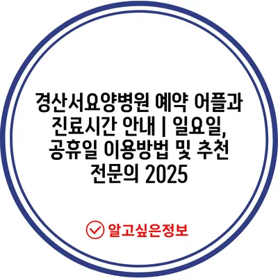 경산서요양병원 예약 어플과 진료시간 안내 | 일요일, 공휴일 이용방법 및 추천 전문의 2025