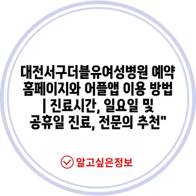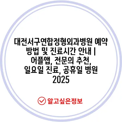 대전서구연합정형외과병원 예약 방법 및 진료시간 안내 | 어플앱, 전문의 추천, 일요일 진료, 공휴일 병원 2025