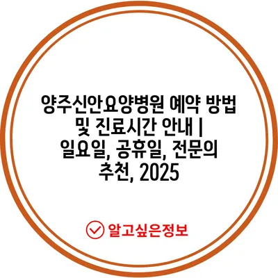 양주신안요양병원 예약 방법 및 진료시간 안내 | 일요일, 공휴일, 전문의 추천, 2025