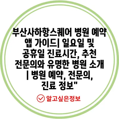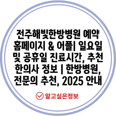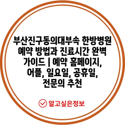 부산진구동의대부속 한방병원 예약 방법과 진료시간 완벽 가이드 | 예약 홈페이지, 어플, 일요일, 공휴일, 전문의 추천