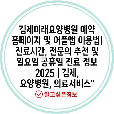 김제미래요양병원 예약 홈페이지 및 어플앱 이용법| 진료시간, 전문의 추천 및 일요일 공휴일 진료 정보 2025 | 김제, 요양병원, 의료서비스”