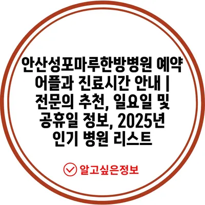 안산성포마루한방병원 예약 어플과 진료시간 안내 | 전문의 추천, 일요일 및 공휴일 정보, 2025년 인기 병원 리스트