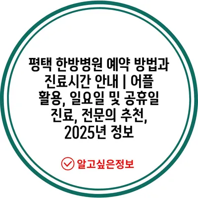 평택 한방병원 예약 방법과 진료시간 안내 | 어플 활용, 일요일 및 공휴일 진료, 전문의 추천, 2025년 정보
