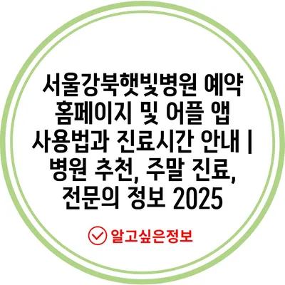 서울강북햇빛병원 예약 홈페이지 및 어플 앱 사용법과 진료시간 안내 | 병원 추천, 주말 진료, 전문의 정보 2025