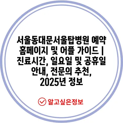 서울동대문서울탑병원 예약 홈페이지 및 어플 가이드 | 진료시간, 일요일 및 공휴일 안내, 전문의 추천, 2025년 정보