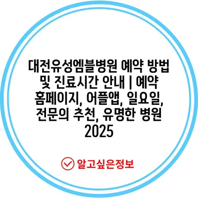 대전유성엠블병원 예약 방법 및 진료시간 안내 | 예약 홈페이지, 어플앱, 일요일, 전문의 추천, 유명한 병원 2025