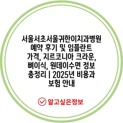 서울서초서울귀한이치과병원 예약 후기 및 임플란트 가격, 지르코니아 크라운, 뼈이식, 원데이수면 정보 총정리 | 2025년 비용과 보험 안내