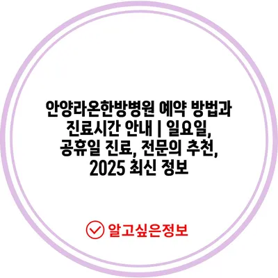 안양라온한방병원 예약 방법과 진료시간 안내 | 일요일, 공휴일 진료, 전문의 추천, 2025 최신 정보