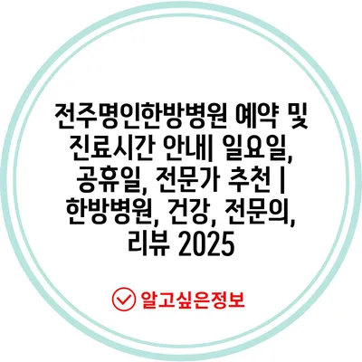 전주명인한방병원 예약 및 진료시간 안내| 일요일, 공휴일, 전문가 추천 | 한방병원, 건강, 전문의, 리뷰 2025